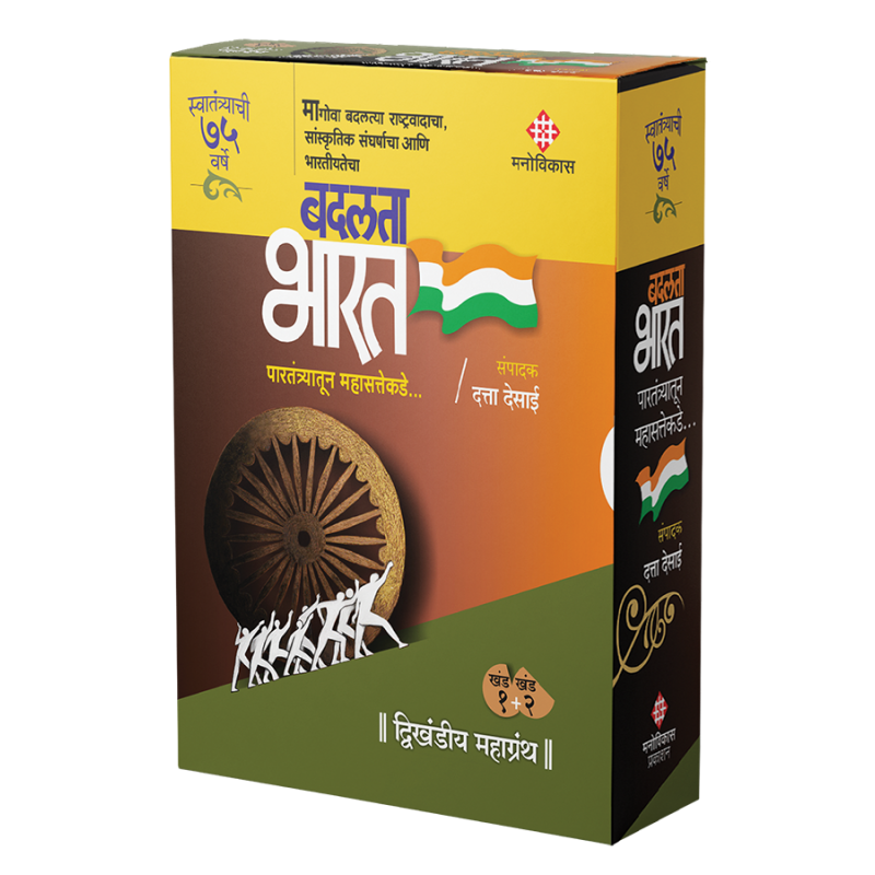 बदलता भारत : पारतंत्र्यातून महासत्तेकडे... संपादन - दत्ता देसाई भारताचे बहुरूपदर्शक आणि समग्र चित्र रेखाटणारा संदर्भग्रंथ ! आपल्या देशाच्या स्वातंत्र्याची पंचाहत्तर वर्षे. असे स्वातंत्र्य आहे की जे जगात सर्वाधिक वर्चस्वशाली असणार्या ब्रिटिश सत्तेविरुध्द इथल्या कोट्यवधी जनतेने अथक संघर्ष करून मिळवले. जगाच्या इतिहासातील एक महान मुक्तिपर्व. एक असा गौरवशाली स्वातंत्र्यसंग्राम की ज्याने आधुनिक भारताला जन्म दिला आणि जगाच्या इतिहासावर आपली छाप उमटवली. असा इतिहास की ज्याने प्रत्येक देशप्रेमी व्यक्तीची मान आजही उंचावते. असे स्त्रीपुरुष 'नायक', नेते, समाजधुरीण, क्रान्तिकारक आणि महामानव की त्यांच्याविषयी आजही देशभर अपार आदर, प्रेम आणि अद्भुत आकर्षणही आहे. दोन शतकांचे विविध जनसमुदायांचे असे संघर्ष की ज्यांना अभिवादन केल्याशिवाय कोणीही भारतीय आजही पुढे जाऊ शकत नाही. या साऱ्याला मनोविकास प्रकाशन अभिवादन करत आहे 'बदलता भारत : पारतंत्र्यातून महासत्तेकडे... ' या आपल्या महाग्रंथाद्वारे! असा ग्रंथ की जो स्वातंत्र्य संग्रामाचा व स्वातंत्र्योत्तर देश उभारणीचा अनोख्या पद्धतीने अगदी मुळापासून वेध घेतो. ज्यात ‘रामायाण-महाभारत आणि भारतीय राष्ट्रवाद’, ‘छत्रपती शिवाजी, मराठेशाही आणि स्वातंत्र्याची वाटचाल’, ‘जालियनवाला बाग ते नमस्ते ट्रम्प’, ‘विवेकानंदांचा धर्म आणि त्यांची भारताची कल्पना’, ‘सावरकर-जीना आणि द्विराष्ट्रवाद’, ‘डावी कॉंग्रेस, उजवे राजकारण आणि सुभाषचंद्र बोस’, ‘चित्रपटांतून घडणारं भारतीयतेचं दर्शन’, ‘भारतीयता आणि बहुसांस्कृतिकता’ अशा विविध विषयांची सखोल मांडणी आहे. एक असा ग्रंथ की ज्याच्या दोन खंडातील आठ विभागात गुंफलेले साठ लेख आपल्याशी बोलतात - या सार्या गुंतागुंतीच्या आणि रोमांचकारी इतिहासावर. ते उकलतात या देशाचे असे अंतरंग की जे जितके विलोभनीय आहे तितकेच विषण्ण करणारेही आहे. विविध नामवंत लेखकांनी स्वतंत्र दृष्टिकोनांमधून आणि आपापल्या परिप्रेक्ष्यांतून भारतीय जीवनाच्या विविध क्षेत्रांचे आणि पैलूंचे केलेले परखड विश्लेषण! ज्यातून आपल्या समोर येतो भारताच्या भविष्याची निश्चित अशी दिशा उलगडणारा महाग्रंथ!!