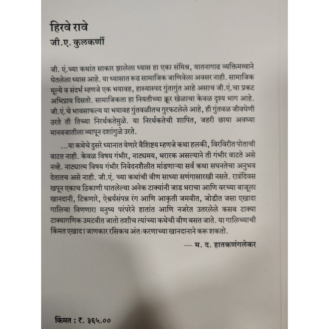 Hirave Rave by G.A. Kulkarni is an educational and informative book that provides expert insights and domain expertise. With evidence-based statements, this concise guide offers potential benefits through its scientific and objective language. Perfect for readers seeking reliable information.