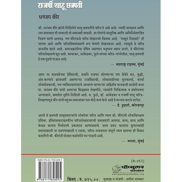 “धनंजय कीर ह्यांनी लिहिलेले हे शाहू छत्रपतींचे चरित्र आहे. व्यक्ती वादग्रस्त आणि ज्या समाजात ती वावरली तो समाजही वादळी. या दोघांचे वस्तुनिष्ठ आणि अभिनिवेशरहित चित्रण करणे अवघड. पण किरांकडे चरित्र लेखनाची किमया आहे. ‘नामूलं लिख्यते’ ही धारणा आहे आणि चरित्रविषयांप्रमाणे रूप घेणारी लेखनकला आहे. त्यामुळे हे चरित्र वाचनीय झाले आहे. समाजक्रांतीचा प्रेषित असणारा मनुष्यच महान ठरतो, हे कीरांच्या चरित्रलेखनाचे सूत्र आहे. सावरकर, आंबेडकर, फुले यांच्या चरित्र-परंपरेतील, शाहू छत्रपती हे एक पुढचे पाऊल आहे.